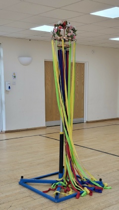 I can now use my maypole at different heights - the tallest pole (below left) is 3.1m. The shortest one (below right) also has a shorter set of ribbons and is 2.15 metres which is fine for a ceiling height of 2.5 metres. Using different combinations of poles I also have 2.7m and2 .5m lengths